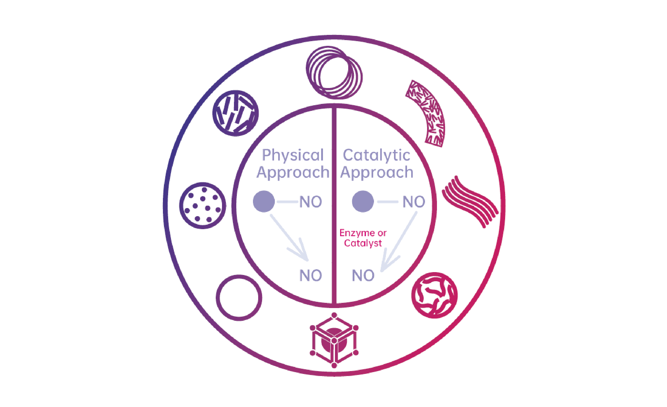 NO緩釋技術(shù)基于多種NO供體(能在特定條件下釋放出NO的多種化合物),在供體分子設(shè)計(jì)、氣體負(fù)載技術(shù)、緩釋條件控制及工藝生產(chǎn)上對(duì)各種負(fù)載材料技術(shù)進(jìn)行深入研究,可以根據(jù)不同應(yīng)用需求場(chǎng)景提供NO緩釋材料及產(chǎn)品,滿足不同的醫(yī)療、消費(fèi)需求。
